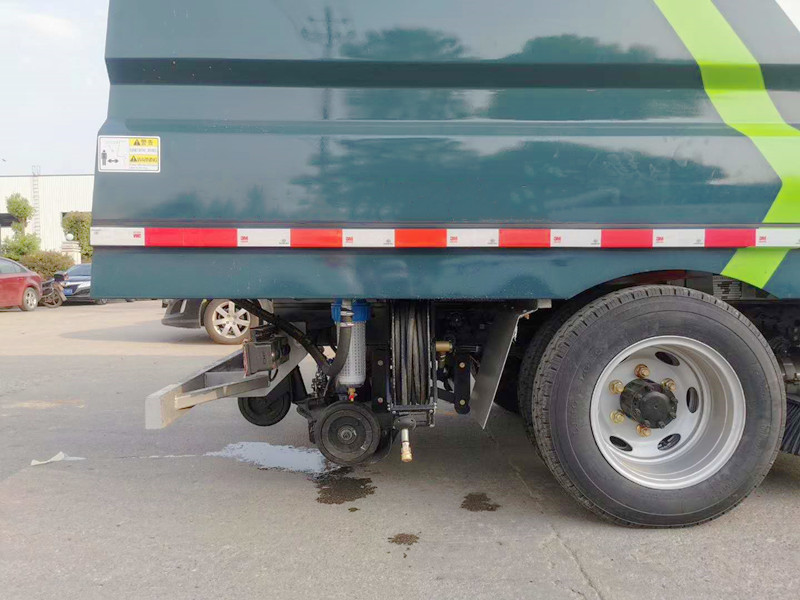 7、左右立掃為雙掃盤,前掃盤帶自動避讓功能,減少了掃刷的數量和掃刷消耗量,能降低使用成本。掃刷上加裝噴水裝置,用于噴霧降塵。